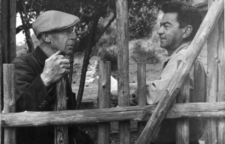 It was a misty, rainy, day before Christmas driving down Highway 1 in Big Sur, California when we saw a big, hand-lettered sign saying, "Henry Miller Memorial Library. Free coffee and wifi." Why not stop? We parked, made our way up through the dripping trees, were welcomed by a young woman browsing the Internet and a cat. Inside the building, the one-time home of Miller's close friend Emil White (at right, with Miller, above) there were books (all kinds of books, not just Miller's work) for sale, busts of Miller, random letters, typewriters, and photographs.