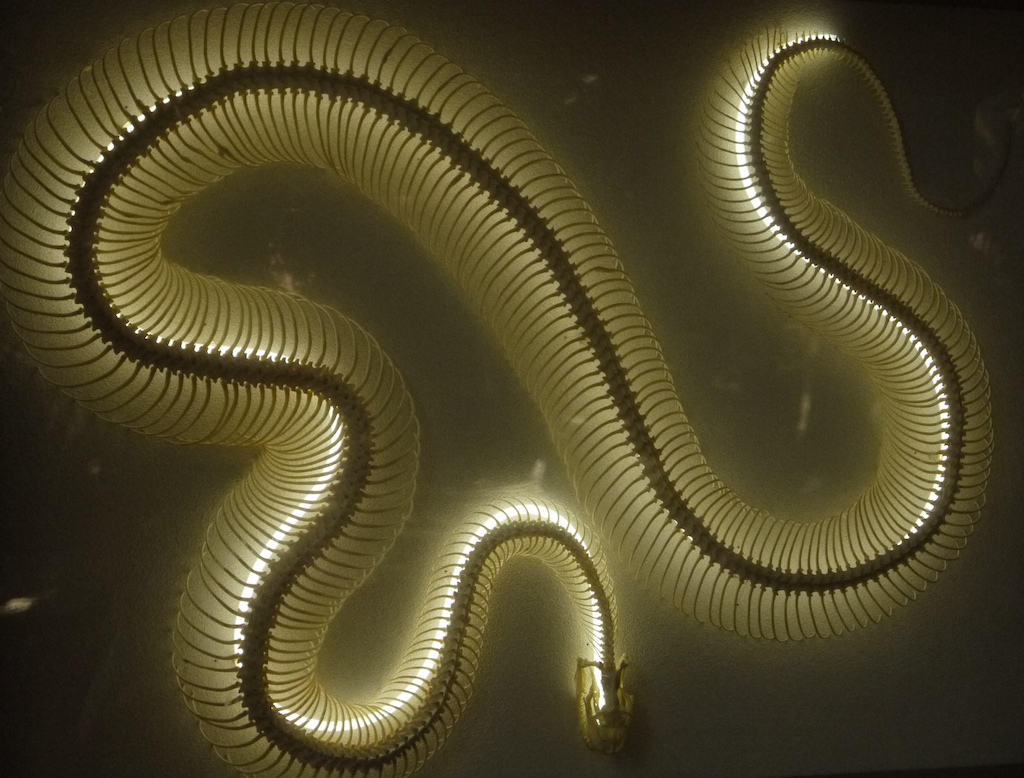 The zoo seemed to use, and appreciate the impact of sculptural installations. Some of them were realistic animals to pose by, but others just generated a sense of play or wonder. Below, metal monkey cut-outs along a walkway; a snake skeleton, and a detail of paving.